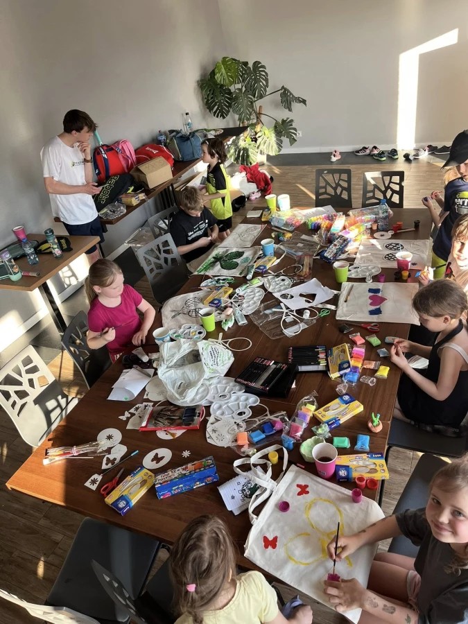 - Integration evening, disco, bonfire with music, tennis quiz, dart tournament, workshops