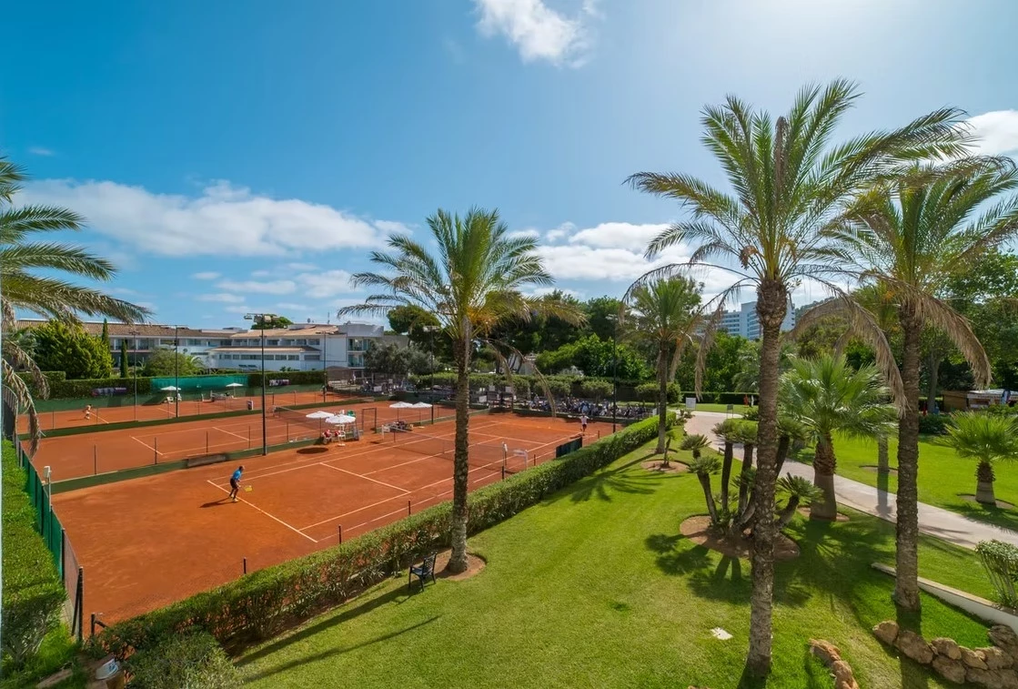 Beach Club Font de Sa Cala - the ideal location for a tennis camp in Mallorca. Just 80 metres from the sandy beach, with access to the aquapark, animation and playground, the hotel is a dream space for families with children. Here, sport meets relaxation - you'll develop your tennis skills on the courts, while outside aerobics, water sports, cycling and hiking in the picturesque surroundings await. Comfort, a variety of activities and a unique location have made the facility popular with guests for years.