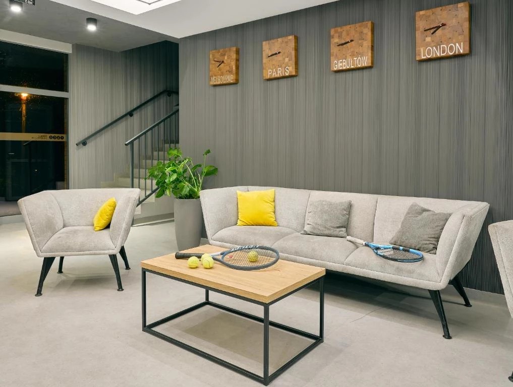 Located in the quiet village of Giebułtów, the Tennis & Country Club Hotel offers facilities such as a terrace, restaurant, bar, spa area, gym, 10 tennis courts and free Wi-Fi. There is private parking on site. A desk is provided in each room at the property. All rooms have a private bathroom with a shower and hairdryer and are equipped with a flat-screen TV and air conditioning. Some rooms also include a seating area. Bed linen and towels are provided in each accommodation option. Guests of the property can enjoy a variety of sports, such as trekking and cycling, in and around Giebułtów. Reception staff is available 24 hours a day.
