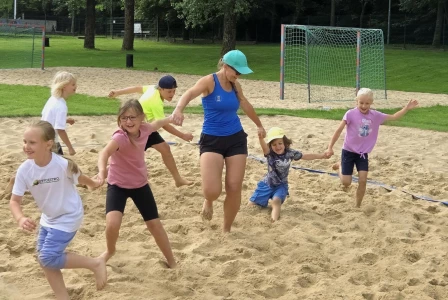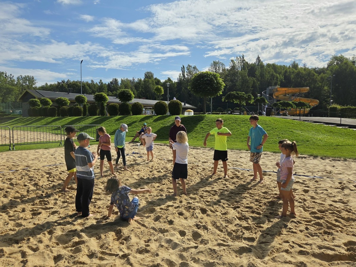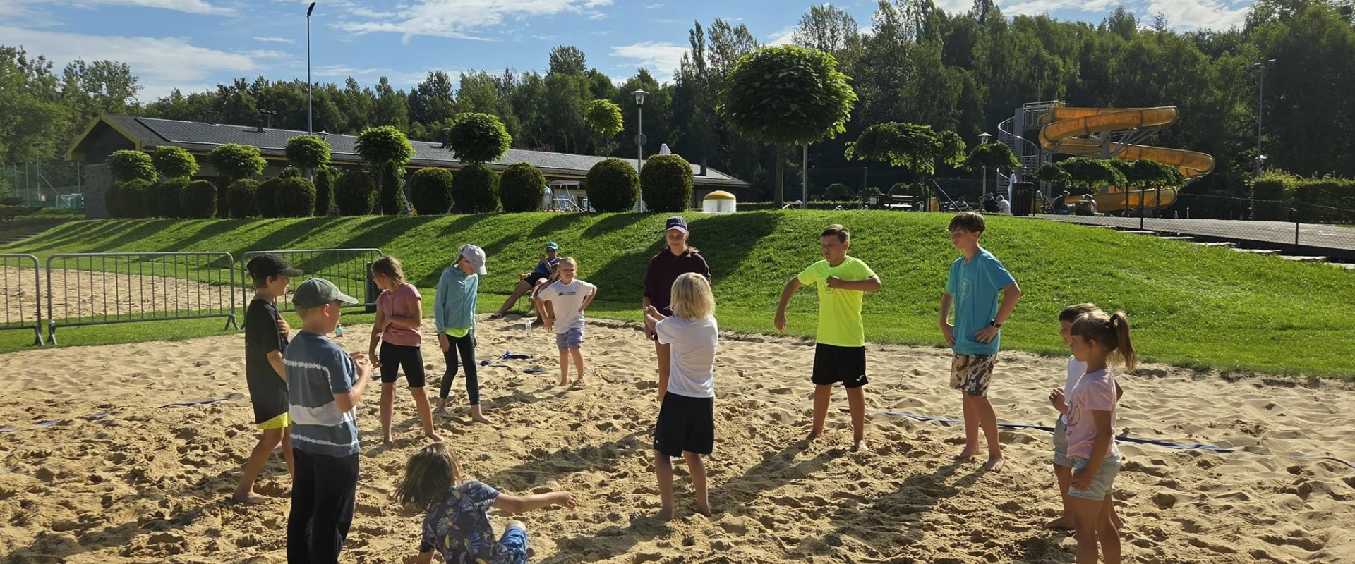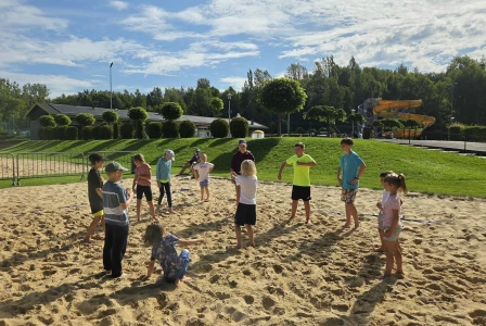 - piłkę nożna, siatkówkę plażową, badmintona, zabawy na placu zabaw