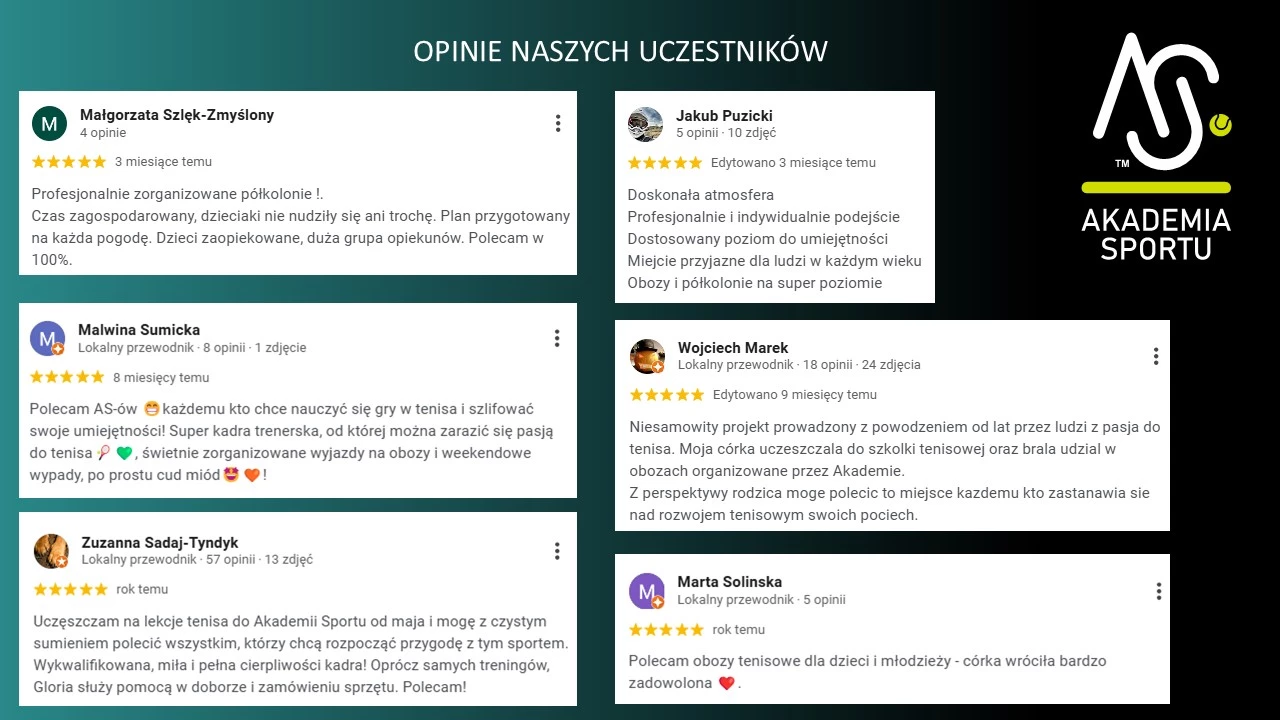 Organizowane przez Akademię Sportu zajęcia to połączenie profesjonalnych treningów, kreatywnych zajęć oraz zabawy na świeżym powietrzu. Wszystko pod okiem wykwalifikowanej kadry i w pełni bezpiecznym otoczeniu.